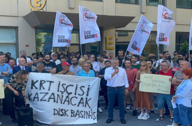 KRT çalışanları eylemlerinin 5’inci gününde Maslak Eclipse Sanatkarlar Sokak’ta bulunan iş yeri önünde basın açıklaması yaptı. KRT çalışanlarına, milletvekilleri, siyasi parti, sendika temsilcileri ve çok sayıda gazeteci destek verdi. DİSK/Basın-İş Genel Başkanı Turgut Dedeoğlu’nun konuştuğu basın açıklamasında, Emek Partisi Genel Başkanı Seyit Aslan, DEM Parti İstanbul Milletvekili Kezban Konukçu, TİP [Devamını Oku…]