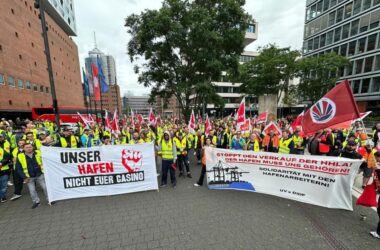 Kuzey Almanya limanlarında çalışan 12 bin işçiyi ilgilendiren TİS görüşmeleri Birleşik Hizmet Sendikası ile liman işverenleri arasında sürüyor. Bugün sabah erken saatlerinde itibaren uyarı grevine çıkan Kuzey Almanya’daki liman işçileri, saat 10.00’dan itibaren Elbe Filarmonisi önünde toplandı. Grevde Hamburg Liman İşletmesinin dünyaca ünlü İsviçre tekeli MSC’ye satılması protesto edildi. Demokratik [Devamını Oku…]