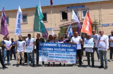Tüm Bel-Sen, İzmir Büyükşehir Belediyesi’nin zabıtalara uyguladığı mobbing protesto edildi. Tüm Belediye ve Yerel Yönetim Hizmetleri Emekçileri Sendikası İzmir 1 Nol’lu Şube, belediye çalışanlarına yönelik baskı, mobbing ve sürgünlere karşı Gürçeşme Yerleşkesinde bulunan Zabıta Daire Başkanlığı önünde açıklama yaptı. “İş yerimizde iş barışı ve huzuru yok” pankartı açılan açıklamada, “Baskı, [Devamını Oku…]
