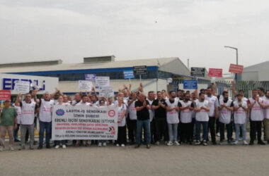 Lastik-İş üyesi beş işçinin işten atıldı Erenli Kauçuk fabrikasında patrona seslenildi, işçilerin anayasal haklarına sahip çıkma çağrısı yapıldı. İzmir Kemalpaşa Organize Sanayi Bölgesi’nde bulunan Erenli Kauçuk fabrikasında Lastik İş Sendikasına üye olan 5 işçi işten atıldı. Fabrika önünde yapılan açıklamada, işçiler sendikal haklarından vazgeçmeyeceklerini kaydetti. 400 işçinin çalıştığı fabrikada ocak [Devamını Oku…]