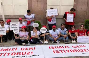 İzmir Büyükşehir Belediyesi’ne bağlı İZENERJİ ve İZDOĞA şirketlerinde çok sayıda işçi geçtiğimiz hafta işten çıkarıldı. İşten çıkarılan işçiler bugün Egemenlik Binası önünde oturma eylemine başladı. Sabah erken saatlerde toplanan DİSK Genel-İş 2 No’lu Şube üyesi İZENERJİ işçileri ile Belediye İş 2 No’lu Şube üyesi İZDOĞA işçileri, “İşimizi Geri İstiyoruz” yazılı [Devamını Oku…]