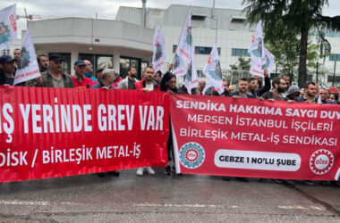 DİSK’e bağlı Birleşik Metal-İş’in 2022 yılında yetki aldığı Mersen’de işçiler greve çıktı. Fransız sermayeli Mersen’de, işçiler yaklaşık 2 yıldır sendika ve toplu sözleşme hakları için mücadele ediyorlar. X hesabından paylaşım yapan Birleşik Metal-İş Genel Başkanı Özkan Atar, “Dünya çapında 33 ülkede 50 den fazla üretim tesisi bulunan Fransız şirketin işçileri [Devamını Oku…]
