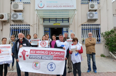 Çarşamba eylemlerini sürdüren Aile Sağlığı Merkezi çalışanları bugün de vergi kesintilerinin yüzde 15’te sabitlenmesi istemiyle birçok noktada iş bıraktı. Aile Sağlığı Merkezi çalışanları, “vergide adalet” talepli gerçekleştirdikleri çarşamba eylemlerinde beş haftayı geride bıraktı. Vergi oranının yüzde 15’te sabitlenmesini isteyen emekçiler, bu talep kabul edilene dek her çarşamba iş bırakmayı sürdüreceklerini [Devamını Oku…]