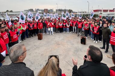 İzmir Gaziemir’deki Ege Serbest Bölgesi’nde bulunan ABD sermayeli GATES fabrikalarında 350 DİSK/Birleşik Metal İşçileri Sendikası üyesinin 12 gündür sürdürdüğü grev, kazanımla sonuçlandı. DİSK/Birleşik Metal İşçileri Sendikası ile GATES işvereni arasında 27 Eylül 2023’te başlayan 1. Dönem Toplu İş Sözleşmesi görüşmelerinde anlaşma sağlanamaması üzerine, kadın işçilerin çoğunlukta olduğu bu işyerinde, tam [Devamını Oku…]