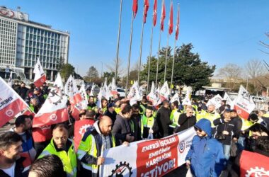 İstanbul Büyükşehir Belediyesi’ne bağlı İstanbul Enerji A.Ş. çalışanları düşük ücret dayatmasına karşı eylemlerinin ikinci gününde. İşçiler Aksaray Metrosu’ndan Saraçhane’ye, İBB binası önüne sloganlarla yürüdü. İBB önünde bir araya gelen işçiler, dertlerinin eylem yapmak olmadığını, insanca yaşayacak bir ücret istediklerini ifade etti. İBB önünde açıklama yapan DİSK/Enerji-Sen Genel Başkanı Süleyman Keskin, [Devamını Oku…]