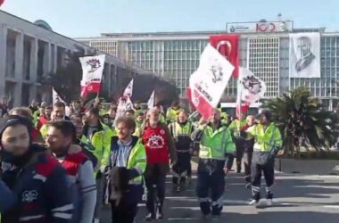İnsanca yaşayacak bir ücret talep eden İstanbul Enerji AŞ işçileri, DİSK’e bağlı Enerji-Sen öncülüğünde İstanbul Büyükşehir Belediyesi önünde eyleme geçti. İşçiler, talepleri karşılanana kadar İBB önünden ayrılmayacaklarını belirterek tüm emek dostlarını saat 14.00’da yeniden İBB önüne çağırdı. İşçilere seslenen DİSK/Enerji-Sen Genel Başkanı Süleyman Keskin, “Olay çıkarmaya gelmedik, bizim bir tek [Devamını Oku…]