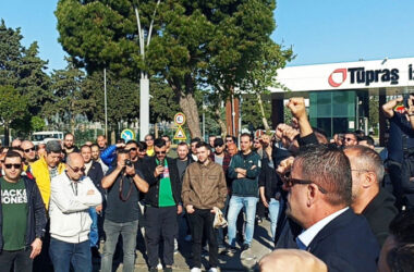 İzmir’de TÜPRAŞ işçileri TİS görüşmelerinin ilerlememesi üzerine tam gün eylem kararı aldı. İzmir’de gündüz vardiyası işbaşı yapmadı. TÜPRAŞ Genel Müdürlüğü ile Petrol-İş Sendikası arasındaki toplu iş sözleşmesi (TİS) görüşmelerinde yine sonuç çıkmadı. Dün yapılan görüşmenin ardından dört rafineride tam gün eylem kararı alındı. TÜPRAŞ İzmir Rafinerisinde gece vardiyası çalışmaya devam [Devamını Oku…]