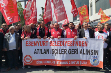 Esenyurt Belediyesi kayyumu 300’e yakın belediye işçisini işten çıkardı. İşçi kıyımına tepki gösteren Genel-İş İstanbul 2 No’lu Şubesi, işçiler işe iade edilmediği takdirde eylemlerinin dozajını artırarak mücadeleye devam edeceklerini vurguladı. Esenyurt’ta belediye başkanı Ahmet Özer’in tutuklanarak görevden alınmasının ardından atanan kayyum, 300’e yakın işçiyi işten çıkardı. DİSK/Genel-İş İstanbul Avrupa Yakası [Devamını Oku…]