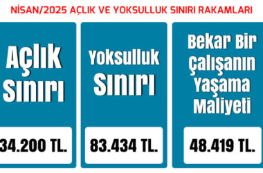 Nisan 2025 Açlık ve Yoksulluk Sınırı raporunu kamuoyuyla paylaşan BES-AR, 4 kişilik bir aile için açlık sınırının 34 bin 200 TL’ye, yoksulluk sınırının ise 83 bin 434 TL’ye ulaştığını belirtti. Büro Emekçileri Sendikası Araştırma Merkezi (BES-AR), Nisan 2025 Açlık ve Yoksulluk Sınırı raporunu kamuoyuyla paylaştı. BES-AR raporuna göre 2025’in nisan [Devamını Oku…]