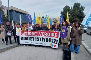 Büro Emekçileri Sendikası (BES), “gelirde ve vergide adalet” talebiyle çok sayıda kentte basın açıklaması yaptı. Ankara’da, Hazine ve Maliye Bakanlığı önünde bir araya gelen sendika üyeleri, vergi adaletsizliğinin konuşulmadığı vergi haftalarını kutlamayı kabul etmediklerini kaydetti. Emekçiler, “Artık bir servet aktarma biçimini alan vergi adaletsizliğine son verin” dedi. Dün (27 Şubat) [Devamını Oku…]