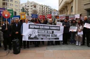 Eskişehir Emek ve Demokrasi Platformu, Antep’te grevde olan işçilerin yanında olduklarını belirterek, “İşçilerin talepleri bir an önce karşılanmalı ve önlerine çıkarılan engeller kaldırılmalıdır” vurgusu yaptı. Eskişehir Emek ve Demokrasi Platformu’nun, Kanatlı AVM önünde yaptığı açıklamada “Başpınar işçilerinin yanındayız! Yasaklar sizin, dayanışma bizim” pankartı açılırken, “Kayyım darbedir” ve “Genel grev, genel [Devamını Oku…]