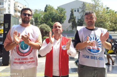 CHP’li Karşıyaka Belediyesi işçilerin ücretlerini ödemiyor. 22 gündür belediye önünde eylem yapan işçiler, bugün bir kez daha buluştu. “Zafer direnen emekçinin olacak”, “Birleşe birleşe kazanacağız” sloganlarını haykıran işçiler adına söz alan Genel-İş 10 No’lu Şube Başkanı Ferit Akdoğan, belediyenin borçlarının yükünü işçilere ödetmek istediğini söyledi. “Belediyeyi yemiş bitirmişler. Ceremesini işçi [Devamını Oku…]