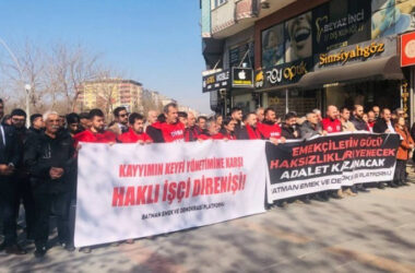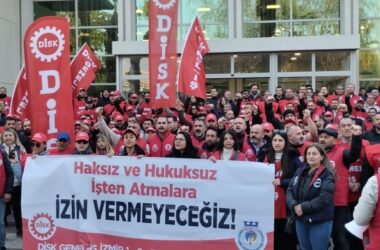 Genel-İş, İzmir Büyükşehir Belediyesi’nde işçilerin ücretsiz izne çıkarılmak istenmesine karşı belediye önünde eylem başlattı. İzmir Büyükşehir Belediyesi şirketlerinden İZENERJİ bünyesinde çalışan 148 işçinin ücretsiz izne çıkarılmak istenmesine karşı oturma eylemi başlatıldı. Genel Hizmetler İşçileri Sendikası İzmir Şubeleri öncülüğünde Kültürpark içinde bulunan belediye binası önünde oturma eylemi başlatıldı. Belediye ile yapılan [Devamını Oku…]