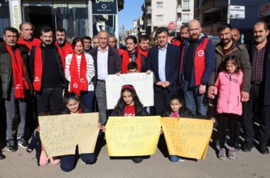 Batman’da DİSK/Genel-İş üyelerinin, kayyımın işçi kıyımına karşı başlattığı nöbet eylemi sürüyor. 61 işçi için sendika binası önünde süren nöbet eyleminde “Belediyede işçi kıyımına karşı nöbetteyiz” pankartı açıldı. MA’nın haberine göre DEM Parti Eş Genel Başkan Yardımcısı Mehmet Rüştü Tiryaki ve yerine kayyım atanan Batman Belediye Eş Başkanı Yeşil Işık’ın yanı [Devamını Oku…]