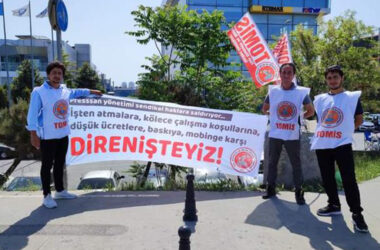 Esenyurt Kıraç’ta bulunan Pressan fabrikasında TOMİS’e üye oldukları için işten çıkarılan işçiler fabrika önündeki direnişlerini sürdürüyor Kendisi, Metal Sanayicileri Sendikası (MESS) üyesi olan Pressan patronu, Tüm Otomotiv ve Metal İşçileri Sendikası (TOMİS) üyesi iki işçiyi işten attı. Sendika üyesi işçiler, kötü çalışma koşullarına, düşük ücretlere, baskıya, mobbinge karşı anayasal hak [Devamını Oku…]