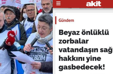 İktidarın yayın organı Yeni Akit gazetesi, özlük haklarının iyileştirilmesi için greve giden doktorları “Beyaz önlüklü zorbalar” diyerek hedef aldı. Erdoğan’ın doktorlar için söylediği “Gidiyorlarsa gitsinler” sözü tartışılmaya devam ederken, Yeni Akit gazetesi, özlük haklarının iyileştirilmesi için greve giden doktorları “Beyaz önlüklü zorbalar” diyerek hedef aldı. “Yeni Akit Beyaz önlüklü zorbalar [Devamını Oku…]