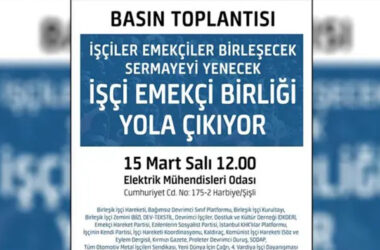 İstanbul’da 15 Mart’ta “Devrimci, birleşik, siyasal sınıf hareketi için yola çıkıyoruz!” şiarıyla düzenleyecek basın toplantısına çağrı yapıldı. Birçok işçi örgütü, devrimci kurum ve demokratik kitle örgütünün bir araya gelerek kurduğu İşçi Emekçi Birliği’nin yaptığı çağrı şu şekilde: “Devrimci, birleşik, siyasal sınıf hareketi için yola çıkıyoruz! İşçiler emekçiler birleşecek sermayeyi yenecek! [Devamını Oku…]