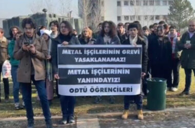 Metal grevine destek açıklaması yapan ODTÜ öğrencileri, “Grev yasağına rağmen grevden vazgeçmeyen metal işçilerinin insanca yaşam mücadelesini büyütmeye çağırıyoruz” dedi. Ortadoğu Teknik Üniversitesi’nde öğrenciler, yasaklama kararına rağmen grevlerini sürdüren metal işçileriyle dayanışmak için eylem yaptı. Fizik çimlerinde toplanan öğrenciler “Metal işçilerinin grevi yasaklanamaz! Metal işçilerinin yanındayız” pankartı açtı. Öğrenciler adına [Devamını Oku…]