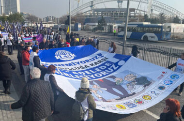 Kamu Emekçileri Sendikaları Konfederasyonu, Ankara’da “Geçinemiyoruz” mitingi düzenliyor. KESK’in çağrısı ile birçok kurum, siyasi parti, sendika mitinge katıldı Kamu Emekçileri Sendikaları Konfederasyonu (KESK) Ankara’da “Geçinemiyoruz” mitingi düzenliyor. Mitinge KESK’in çağrısı ile birçok kurum, siyasi parti ve sendika katıldı. 9’da AKM önünde toplanmaya başlayan kurumlar, 11’de AKM önünden Tandoğan’a yürüyüşe geçti.. [Devamını Oku…]