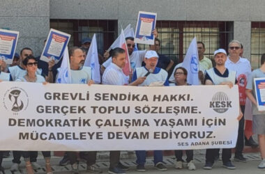 Sağlık ve Sosyal Hizmet Emekçileri Sendikası (SES) 1 Ağustos’ta başlayacak toplu sözleşme görüşmeleri öncesi birçok kentte açıklama yaptı. 7 dönem boyunca sefalete mahkum eden yandaş sendika ve patron devleti temsil eden hükümetin birlikte oynadığı tiyatro ile oyalanmak yerine toplu iş sözleşmesi programı etrafında birlikte mücadele ederek hem yetkilendirilmiş yandaş sendikayı [Devamını Oku…]