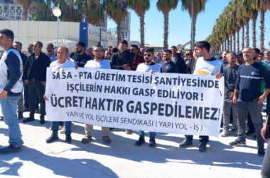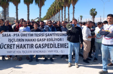 Adana’da bulunan SASA PTA Üretim Tesisi şantiyesinde çalışan 150’den fazla işçinin, maaşlarının 2 aydır ödenmemesi üzerine üretimi durdurarak şantiye önünde başlattığı eylem patronu geri adım atmaya zorladı. Fakat işçiler, bütün işçilerin alacakları ödenene kadar eylemi sürdürme kararı aldı. Adana’da bulunan SASA PTA Üretim Tesisi şantiyesinde çalışan işçiler, 2 aydır maaşlarının [Devamını Oku…]