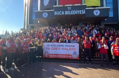 DİSK’e bağlı Genel-İş İzmir 5 No’lu Şube’nin örgütlü olduğu Buca Belediyesinde Sosyal Demokrat Kamu İşverenleri Sendikası ile yürütülen toplu iş sözleşmesi görüşmelerinin tıkanması üzerine belediye binasına grev kararı asıldı. Grev tarihi 12 Kasım olarak belirlendi. Devam eden TİS sürecinde 12 kasıma kadar anlaşma sağlanamaması halinde 25 yıl aradan sonra Buca [Devamını Oku…]