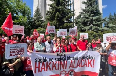Dev Sağlık-İş, Kamu Çerçeve Protokolü’ne ilişkin Çalışma ve Sosyal Güvenlik Bakanlığı önünde yaptığı açıklamada hükümetin tekliften vazgeçmesini belirtti. Türkiye Devrimci İşçi Sendikaları Konfederasyonuna (DİSK) bağlı Devrimci Sağlık İşçileri Sendikası’nın (Dev Sağlık-İş) Kamu Çerçeve Protokolü sürecine ilişkin sağlık ve sosyal hizmet emekçilerinin sesini duyurmak için İstanbul’dan başlattıkları yürüyüş Ankara’da son buldu. [Devamını Oku…]