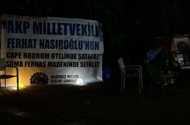 Bağımsız Maden İş üyesi oldukları için işten atılan Soma Fernas Madencilik işçileri AKP milletvekili patron Nasıroğlu’nun Bodrum’daki otelinin önüne taşıdıkları direnişte 2 kez gözaltına alındı. Manisa’nın Soma ilçesinde AKP Batman milletvekili Ferhat Nasırlıoğlu’nun sahibi olduğu Fernas Madencilik’te, Bağımsız Maden İş sendikasına üye olduğu için işten çıkarılan işçilerin direnişi sürüyor. Direnişi [Devamını Oku…]