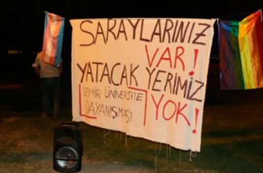 İzmir Üniversite Dayanışması’nın Küçükpark’ta battaniyeyle yaptığı yürüyüş polis tarafından engellendi. Battaniyenin propaganda olduğunu iddia eden polis, gözaltı yapmakla tehdit etti. İzmir Üniversite Dayanışması, Bornova Küçükpark’ta barınma sorununa dikkat çekmek için üzerilerinde battaniyelerle yürümek istedi. Üniversite öğrencileri polis tarafından engellendi. Üniversite öğrencileri, Küçükpark’ta barınma hakkı eylemlerine ilişkin saat 21.00’da bir açıklama [Devamını Oku…]