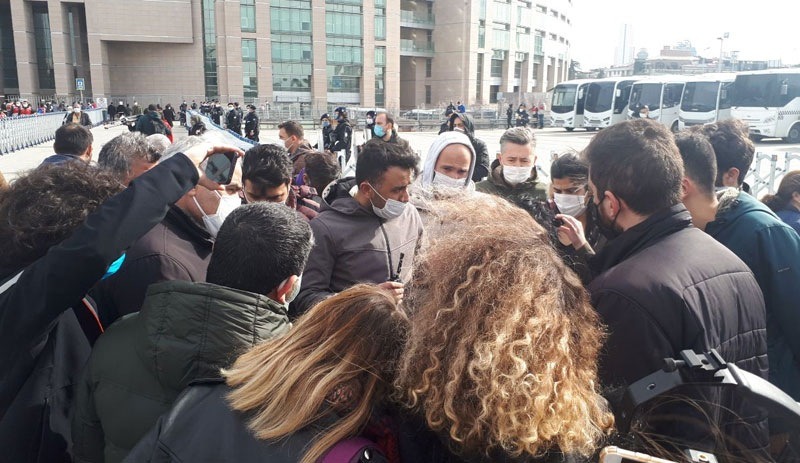 Duvar yazılaması yaptıkları gerekçesiyle gözaltına alınan öğrenciler için adliye önünde bir araya gelen 9 kişiyi gözaltına aldı. Boğaziçi direnişinde tutuklananların serbest bırakılması talebiyle yazılama yaptıkları için dün sabah gözaltına alınan 5 üniversiteli bugün Çağlayan Adliyesi’ne getirildi. Polis sabah saatlerinden itibaren adliye çevresini abluka altına aldı. Adliye önünde toplanmaların yasaklandığını belirten polis, [Devamını Oku…]