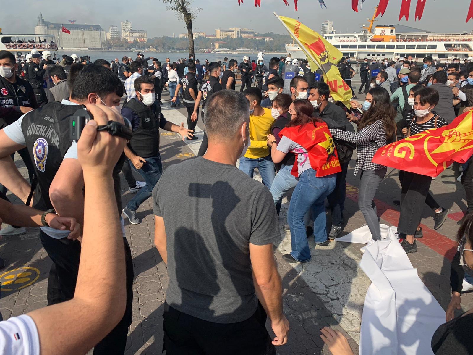 Kadıköy’deki Beşiktaş İskelesi önünde, Halkların Demokratik Partisi (HDP) Gençlik Meclisi, Yeni Demokrat Gençlik (YDG), Devrimci Öğrenci Birliği (DÖB) ve Gençliğin Devrimci Güçleri (DEV-GÜÇ) üyeleri, “Faşizme karşı özgürlüğümüz için birlikte yürüyoruz” şiarıyla bir araya gelerek açıklama yaptığı sırada polis saldırmış, çok sayıda genç gözaltına alınmıştı. Konuyla ilgili açıklama yapan Dev-Güç, YDG, [Devamını Oku…]