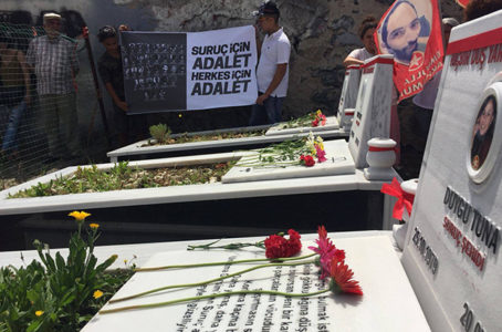 Suruç Aileleri İnisiyatifi, Suruç katliamının 3’üncü yıl dönümünde yaşamını yitiren Polen Ünlü ile Hatice Ezgi Sadet ile 4 ay önce kalp krizi sonucu yaşamını yitiren Polen Ünlü’nün annesi Şennur Ünlü’nün Ihlamurkuyu’ndaki mezarları başında anma yaptı. Suruç’ta yaşamını yitirenlerin fotoğrafının basılı olduğu ve “Suruç için adalet herkes için adalet” pankartının taşındığı [Devamını Oku…]