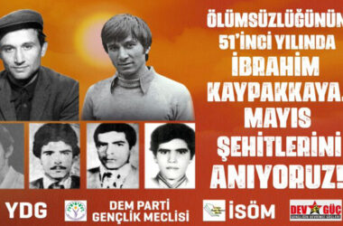 YDG, Dem Parti Gençlik Meclisi, İSÖM ve Dev-Güç, devrimci önder İbrahim Kaypakkaya, Haki Karer ve Dörtler’i anmak için bugün (18 Mayıs) 19:30’da Kadıköy Süreyya Operası önünde olacak Yeni Demokrat Gençlik (YDG), Dem Parti Gençlik Meclisi, İstanbul Özgür Öğrenci Meclisi (İSÖM) ve Gençliğin Devrimci Güçleri (Dev-Güç), “Ölümsüzlüğünün 51’inci yılında İbrahim Kaypakkaya, [Devamını Oku…]