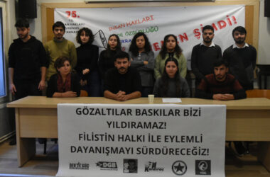Ambarlı Limanı’nda Filistin’le dayanışmak için yapmak istedikleri eyleme dönük polis saldırısına tepki gösteren gençlik örgütleri, “Keyfi yasak kararlarını tanımıyoruz” dedi Ambarlı Limanı’nda Filistin’le dayanışmak için yapmak istedikleri eyleme dönük polis saldırısına tepki gösteren gençlik örgütleri, “Günlerdir soykırım saldırısına maruz kalan, her gün onlarca çocuğunu yitiren, katledilen Filistin halkı ile gerçek [Devamını Oku…]