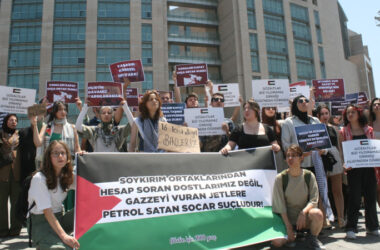 İfade işlemleri için İstanbul Adliyesi’ne getirilen Filistin İçin Bin Genç üyesi 13 kişi için yapılan dayanışma eyleminde suçlu olanın Filistin halkıyla dayanışan gençler değil, siyonist İsrail ile işbirliği yapanlar olduğunun altı çizildi. Siyonist İsrail uçaklarına yakıt sağlayan SOCAR’ı protesto ettikleri için gözaltına alınan Filistin İçin Bin Genç üyesi 13 kişi [Devamını Oku…]