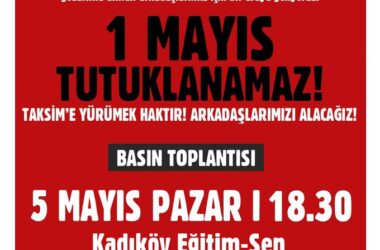 1 Mayıs gözaltı ve tutuklamalarına karşı İstanbul Emek, Barış ve Demokrasi Güçleri’nin çağrısıyla basın açıklaması düzenlenecek. 1 Mayıs eylemlerinden sonra başlatılan gözaltı ve tutuklamalar devam ediyor. 3 Mayıs günü yapılan operasyonda gözaltına alınanlardan 38 kişinin tutuklanmasının ardından bu sabah yapılan 2. operasyonda devrimcilerin evleri basılarak işkence ve tekditlerle gözaltıların yapıldığı [Devamını Oku…]