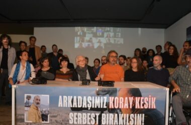 Yönetmen Koray Kesik’in gözaltına alınmasına tepki gösteren meslektaşları, “Baskı, sansür ve yasaklarla bu ülkenin sanatına yapılanları yıkıcı ve kabul edilemez buluyoruz” açıklaması yaptı. İzmir’de dün gözaltına alınan görüntü ve sanat yönetmeni Koray Kesik’in meslektaşları, İstanbul Beyoğlu’nda bulunan Aznavur Karşı Sanat Merkezi’nde açıklama yaptı. İnsan Hakları Derneği yöneticileri ile çok sayıda [Devamını Oku…]