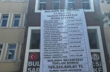 DEM Parti’nin kayyımdan 165 milyar 226 bin 845 TL borçla devraldığı Bulanık Belediyesi’nin bütçesinden AKP’nin seçim çalışmaları için 350 bin TL harcandığı belirtildi. Halkların Eşitlik ve Demokrasi Partisi, 31 Mart Yerel Seçimleri’nde yönetime geldiği Muş’un Bulanık Belediyesi’nin kayyımdan kalan borçlarını açıkladı. İki dönem kayyımın yönettiği belediyenin borcu afişle belediye binasına [Devamını Oku…]