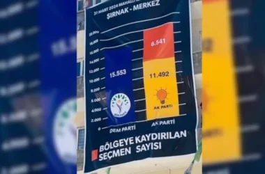 Halkların Eşitlik ve Demokrasi Partisi Şırnak İl Örgütü, 31 Mart’ta yapılan seçimlerde hangi partinin kaç oy aldığının ve kaç asker-polisin taşındığına dair bilgileri paylaşan pankartı binasına astı. Mezopotamya Haber Ajansı’nda yer alan habere göre, pankartta, DEM Parti’nin oy sayısının 15 bin 553, AK Parti’nin 11 bin 492 ve taşımalı asker [Devamını Oku…]