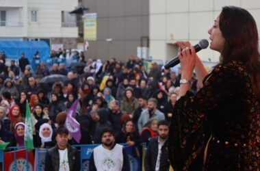 Dep ilçesindeki coşkulu Newroz kutlamasında konuşan DEM Parti Eş Genel Başkanı Tülay Hatimoğuları, Erdoğan’ın “teröristan” sözlerine, “Kürt halkının yaşadığı coğrafya ‘teröristan’ değildir, Kurdistan’dır” şeklinde tepki gösterdi. Mazlum Doğan’ın memleketi Xarpêt’in Dep (Karakoçan) ilçesindeki Newroz kutlamasına katılan Halkların Eşitlik ve Demokrasi Partisi (DEM Parti) Eş Genel Başkanı Tülay Hatimoğulları, Mart ayında [Devamını Oku…]