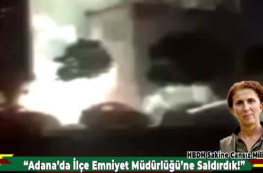HBDH Sakine Cansız Milisleri yayınladıkları açıklama ile Adana İlçe Emniyet Müdürlüğü’ne eylem düzenlediklerini duyurdu Yazılı açıklamada; eylem hakkında; “11 Ocak akşamı saat 21.00 civarında, Yüreğir’de çıktık faşist düşmanın karşısına. Koza Mahallesi’ndeki ilçe emniyet müdürlüğüne parça tesirli güçlendirilmiş bombalarımızla ve havai fişeklerle saldırdık. Bir anda milislerimizi karşısında gören faşist polis, korku [Devamını Oku…]