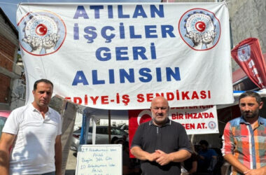 Artvin’in Şavşat ilçesinde AKP’li belediye yönetiminin 6 Eylül 2024 tarihinde işten attığı 40 işçi, işe iade davasını kazanmalarına rağmen geri alınmayınca direniş başlattı. 15 gündür direnişte olan Belediye-İş Sendikasına üye işçileri, DİSK’e bağlı Genel-İş Sendikası Rize-Artvin Şube Başkanı Selim Bilgin ziyaret etti. İşe iade davasını kazanan işçilerin geri alınmamasının hukuksuzluk [Devamını Oku…]