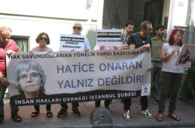 İHD, tutsaklara para yatırdığı için tutsak edilen üyeleri Hatice Onaran için Adalet Bakanlığına mektup gönderdi. İnsan Hakları Derneği (İHD), tutsaklara para yatırdığı için tutsak edilen üyeleri Hatice Onaran’ın serbest bırakılması talebiyle Beyoğlu’nda bulunan dernek binası önünde yan yana geldi. “Hatice Onaran yalnız değildir” pankartı açılan eylemde, “Hatice Onaran serbest bırakılsın” [Devamını Oku…]