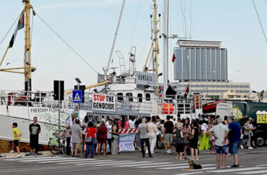 Soykırım saldırılarını sürdüren İsrail’in Gazze’ye yönelik ablukasını delmek ve insani yardım ulaştırmak için yola çıkan Küresel Sumud Filosu’na İtalya’nın en büyük liman sendikalarından Unione Sindacale di Base’den destek geldi. Cenova Limanında düzenlenen yürüyüşte İngiliz Novara’ya konuşan bir liman işçisi, “Eğer teknelerimizle, yoldaşlarımızla 20 dakikalığına bile iletişimimizi kaybedersek, Avrupa’yı durdururuz” dedi. [Devamını Oku…]