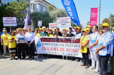 KESK, Gazze’deki açlığa dikkat çekmek için İsrail Büyükelçiliği önünde yaptığı basın açıklaması yaptı, “Gazze’nin yüzde 90’nı kıtlık yaşarken AKP iktidarı İsrail ile ticareti sürdürüyor.” dedi. Soykırımcı İsrail’in saldırıları ve abluka altında bulunan Gazze’de yüzbinlerce kişi açlıkla mücadele ediyor. Özellikle çocuklar yetersiz beslenme ve hastalıkla mücadele ediyor. Birleşmiş Milletler resmen kıtlık [Devamını Oku…]