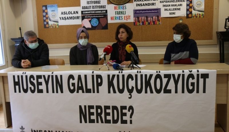 İnsan Hakları Derneği (İHD) İstanbul Şubesi, Kanun Hükmünde Kararname’yle (KHK) görevinden uzaklaştırılan eski Başbakanlık Raportörü Hüseyin Galip Küçüközyiğit ile ilgili Beyoğlu’nda bulunan şube binalarında basın toplantısı gerçekleştirdi. 29 Aralık 2020’den bu yana Küçüközyiğit’ten haber alamayan kızı ve Küçüközyiğit’in yakınlarının katılımıyla gerçekleşen toplantıda “Hüseyin Galip Küçüköztiğit nerede?” yazılı pankart açıldı. [Devamını Oku…]