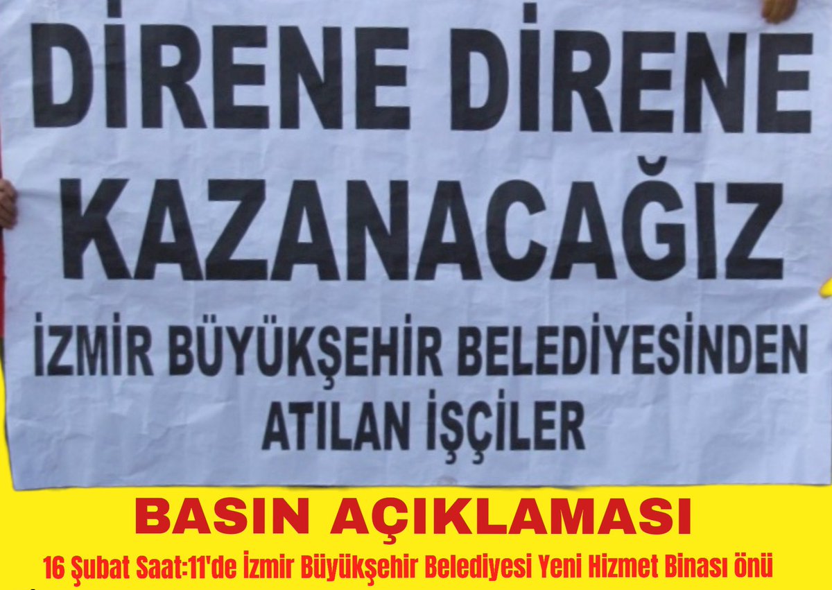 İzmir Büyükşehir Belediyesi bünyesindeki İZENERJİ ve İZELMAN’da çalışırken güvenlik soruşturması gerekçesiyle işlerinden atılan 16 işçi, 16 Şubat Salı günü (yarın) saat 11.00’da belediye önünde basın açıklaması gerçekleştireceğini duyurdu. Yeni Asır Gazetesi’nin belediye bünyesinde işe alınanların ‘HDP’den gelen listeler aracılığıyla’ yerleştirildiğini iddia eden haberlerinin ardından Valinin oluşturduğu ve yine kendisinin başkanlık [Devamını Oku…]
