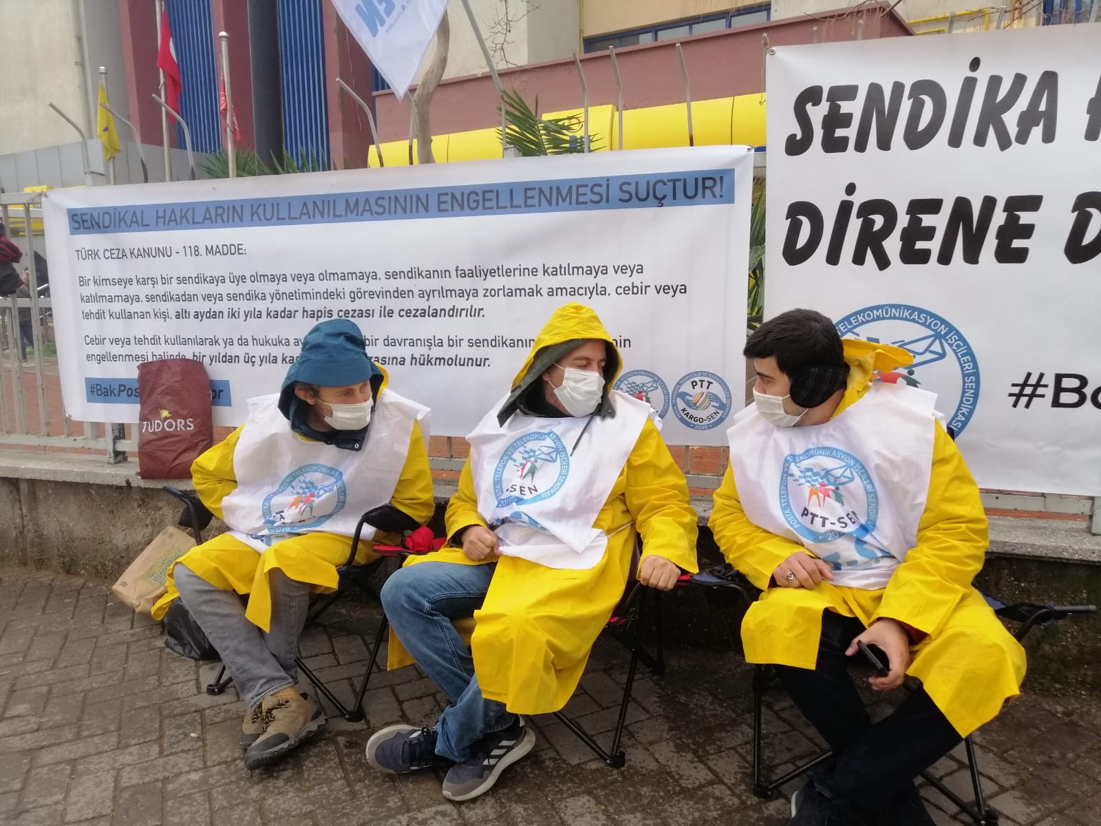 Sendikaya üye oldukları için işten atılan PTT işçileri, Ankara’da kurum müdürlüğü ile görüşmek üzere yürüyüş gerçekleştirdi. PTT-Sen öncülüğünde gerçekleşen eyleme polis saldırısı yaşandı. Saldırı sonucu emekçiler gözaltına alındı. PTT emekçileri talepleri yerine getirilene kadar eyleme devam edeceklerini duyurdu. 1) Ücretsiz izinler kaldırılsın 2) İşe iade 3) Sendikamız ve taşeron işçiler [Devamını Oku…]