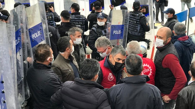 AKP’nin ‘Tamamlayıcı Emeklilik Sistemi’ adı altında kıdem tazminatını ortadan kaldırmasına yönelik tepkiler sürüyor. DİSK ve bağlı sendikaların Meclis önünde yapacağı basın açıklamasına polis saldırdı. Saldırı sırasında, Birleşik Metal-İş Örgütlenme Daire Başkanı Hami Bektaş ters kelepçelenerek gözaltına alındı. DİSK Genel Başkanı Arzu Çerkezoğlu, Birleşik Metal-İş Genel Başkanı Adnan Serdaroğlu ve Genel-İş [Devamını Oku…]