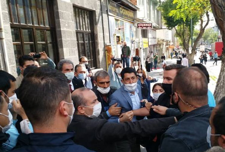 Kars Belediye Eşbaşkanı Ayhan Bilgen, Ankara Cumhuriyet Başsavcılığı tarafından sürdürülen ”Kobane Soruşturması” kapsamında bugün tutuklandı. Bilgen’in tutuklamasının ardından Kars Belediyesi’ne kayyum atandı. Belediyeye kayyum atanmasının ardından HDP Kars İl Örgütü belediye binası önünde açıklama yapmak istedi. HDP milletvekilleri Dersim Dağ ve Habip Eksik’in de aralarında bulunduğu grubun, belediye binası önüne [Devamını Oku…]